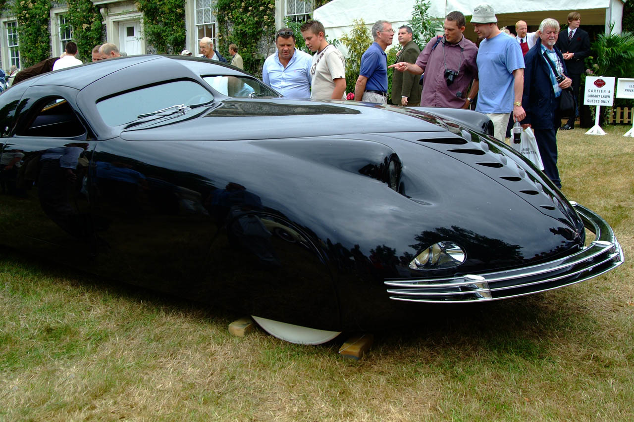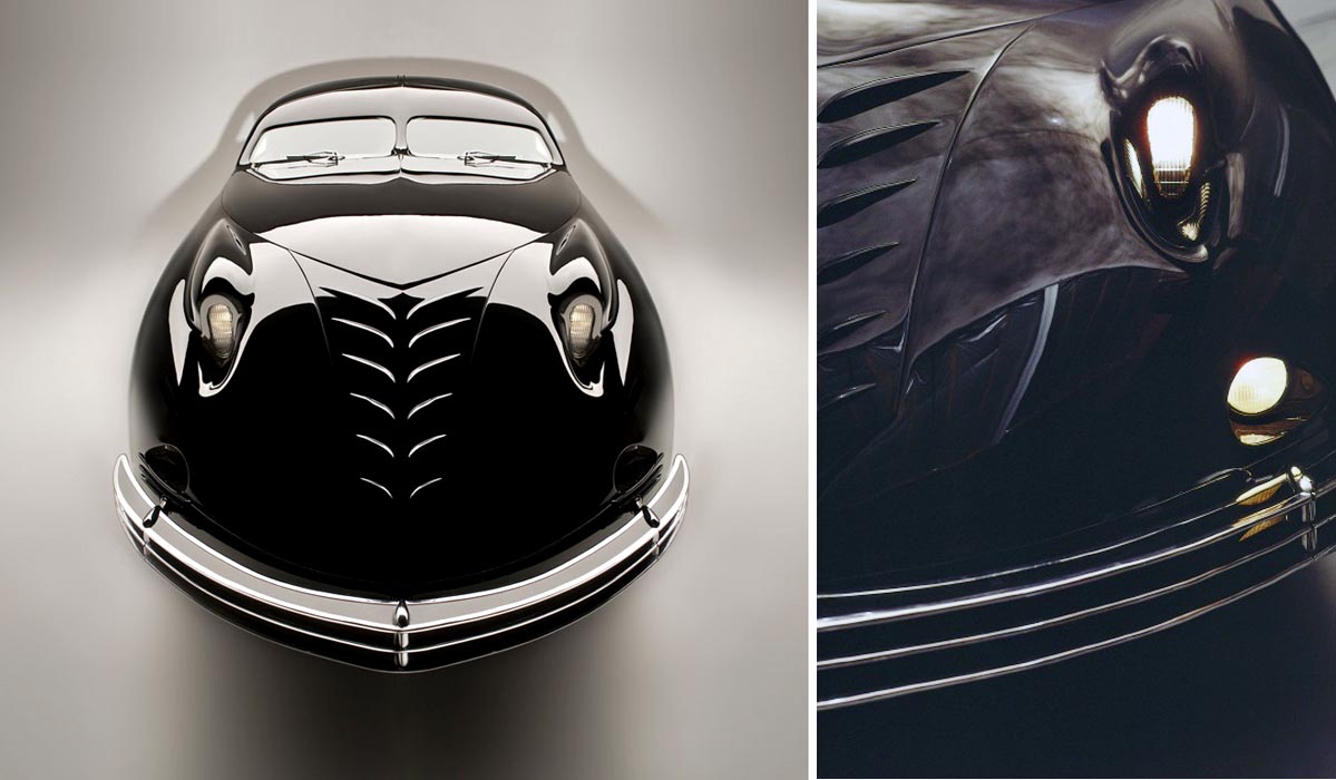 Для чистоты поверхности были убраны все выступающие дверные ручки, вместо которых виднелись лишь кнопки электрических замков, срабатывающие при нажатии. Огромный радиатор спрятали под покатый и длинный "нос" капота типа "аллигатор" с дерзкими, но выразительными "жабрами" воздухозаборников, а небольшие фары "утопили" в поверхность крыльев.