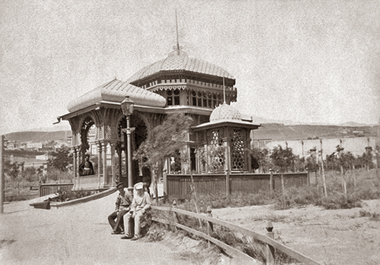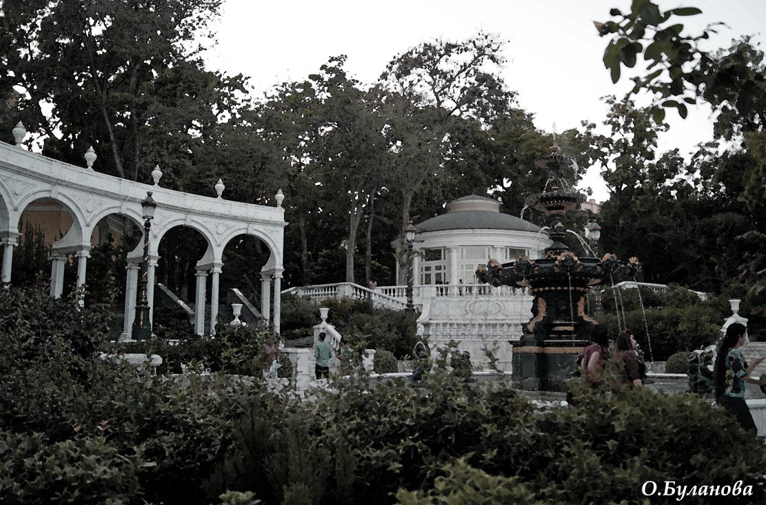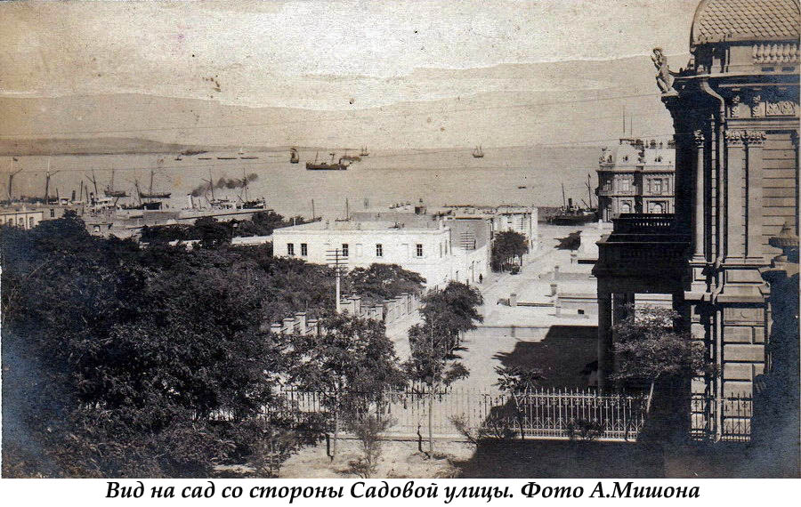 Непритязательная в нашем климате дереза с живописными красными ягодками и желтофилиновые поляны покрывали все свободное пространство сада, создавая очень красивое колористическое решение. А если добавить к этому лазурную морскую панораму, оркестры, играющие классическую музыку, то можно представить себе все очарование этого места, которым по праву гордилась городская управа. (Азиатскую музыку оркестрам было разрешено играть лишь с 1895 г. у верхнего павильона.)