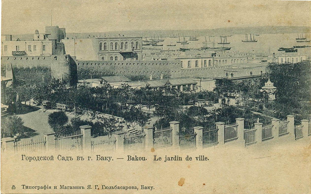 Вот что пишет о саде в начале 40-х гг. XIX в. И.Березин в книге "Путешествие по Дагестану и Закавказью": "Для публичной жизни в Баку нет ничего, кроме общественного сада, в котором единственное развлечение доставляет скромный тюлень, обитающий в садке, а от зною и любопытных взоров негде укрыться: всего одна грешная аллея. Впрочем, в саду почти никогда не видно никого, а гуляют более по форштадту".