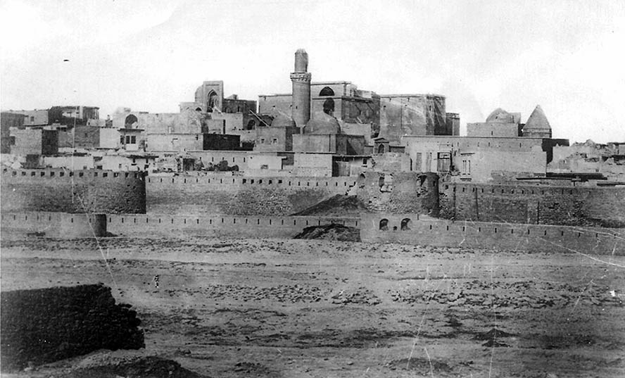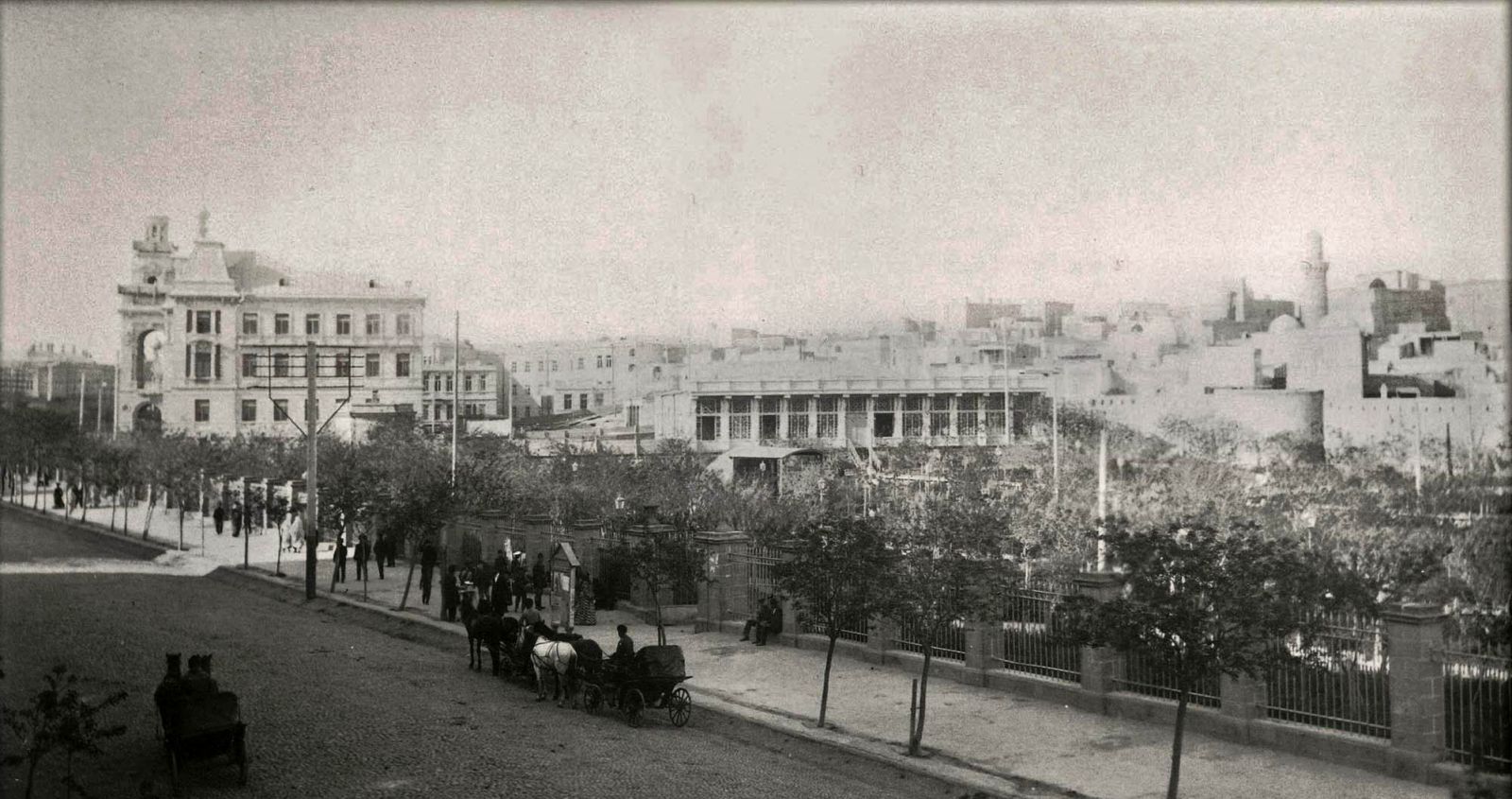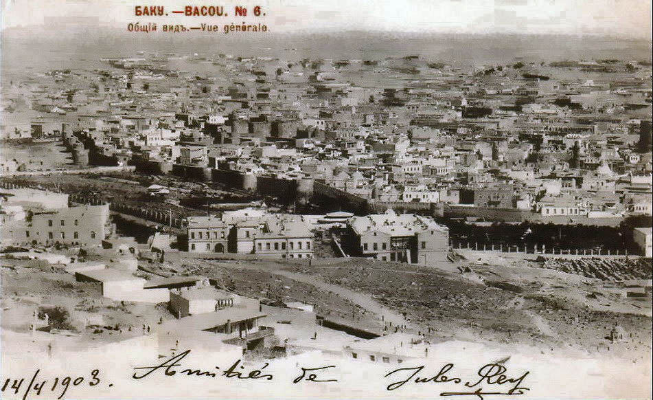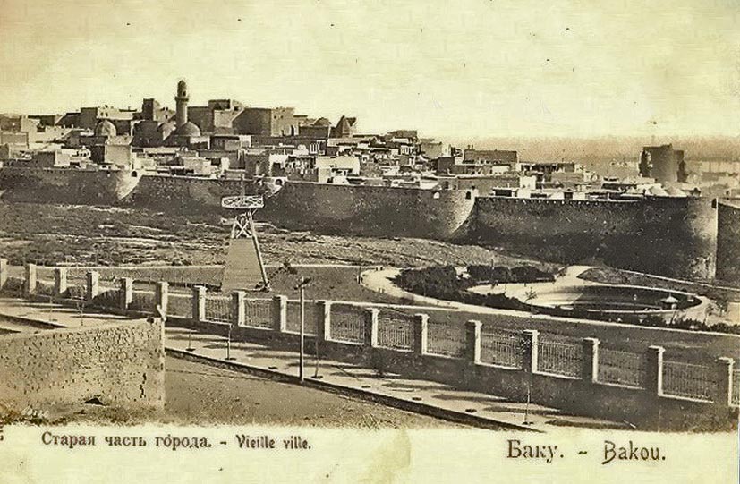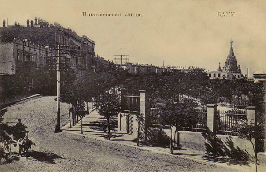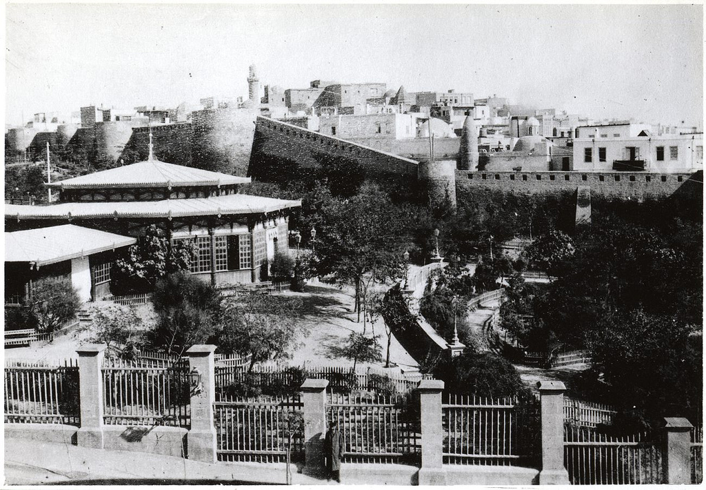 Пространство на фото между стенами только кажется узким, но тут все дело в том, что старые фотокамеры сильно искажали перспективу, точнее, сжимали, и далекое казалось очень близким. На самом деле расстояние было довольно широким - на месте второй стены красуются сегодня Исмаилия, Бакинская мэрия и другие прекрасные здания вдоль ул. Истиглалият (Николаевской в то время).