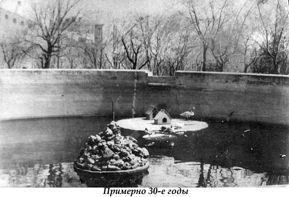 В этом же бассейне соорудили домик для лебедей. К 1895 г. лебедей насчитывалось 12 штук, а еще были гусь и утки.