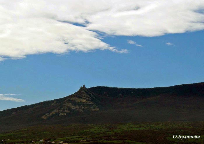 На стену эту мы уже, конечно, не попали - попробуй до нее доберись! Зато заинтересовались этимологией топонима "Чирах Гала" и вот что выяснили: "гала", понятное дело, "крепость", "башня". Это даже я, бывшая москвичка, знаю. А вот "чирах" - это уже интереснее. Например, на многих тюркских языках есть слово "чирак", что означает "ученик, подмастерье". Какое отношение подмастерье может иметь к крепости? Или допустить, что ее строительство было своего рода экзаменом для признания учеников строителей настоящими мастерами? Смелое допущение! Многие переводят "Чирах Гала" как "Крепость-лампа". Это уже ближе к истине, ведь не только у тюрков, но и урумов и ромеев слов "чирах" означает "свеча", "светильник", "лампада". Почему крепость получила такое название? Видимо, из-за сигнальных огней, горевших на главной башне. В далекие времена было принято зажигать такие огни... В любом случае, слово "чирах" перешло во многие языки и даже компьютер не подчеркивает его красным. Оно нашло отражение и в фамилиях. Например, в Украине есть фамилия Чирах, в Армении Чирахян, в Грузии Чирахашвили. Кстати, приставку "швили" многие грузины переводят как "чужак", "пришелец". Видимо, пришельцы из крепости Чирах Гала добрались и до Грузии...