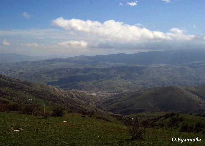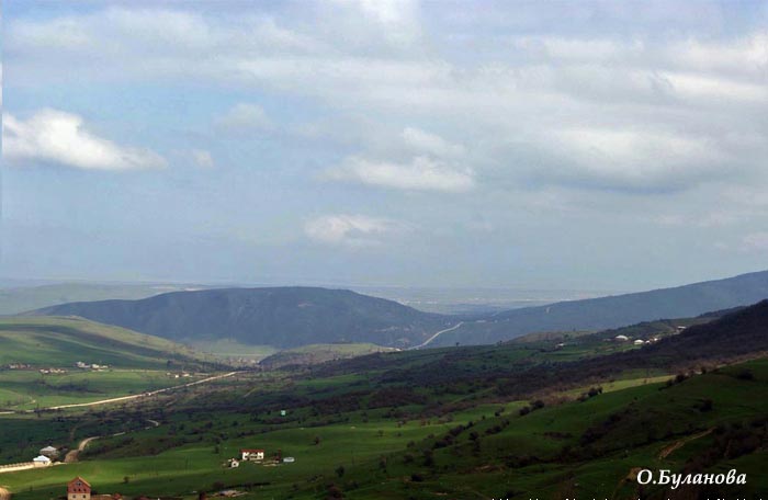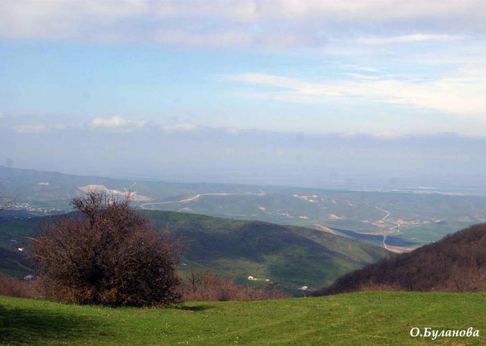 Стоял теплый и солнечный весенний день. Мы выехали из Баку ранним утром и любовались менявшимся каждые десять километров пейзажем. Ехали мы в сторону Дивичей, пардон, города Шабран - так теперь называются Дивичи в честь древнего поселения. После него нужно повернуть налево (а ехали мы практически по берегу моря) и поехать вглубь "материка". По обе стороны от дороги раскинулись невероятной красоты горы и равнины, перевалы и ущелья. Горы здесь, правда, невысокие, какие-то акварельные, нежные.