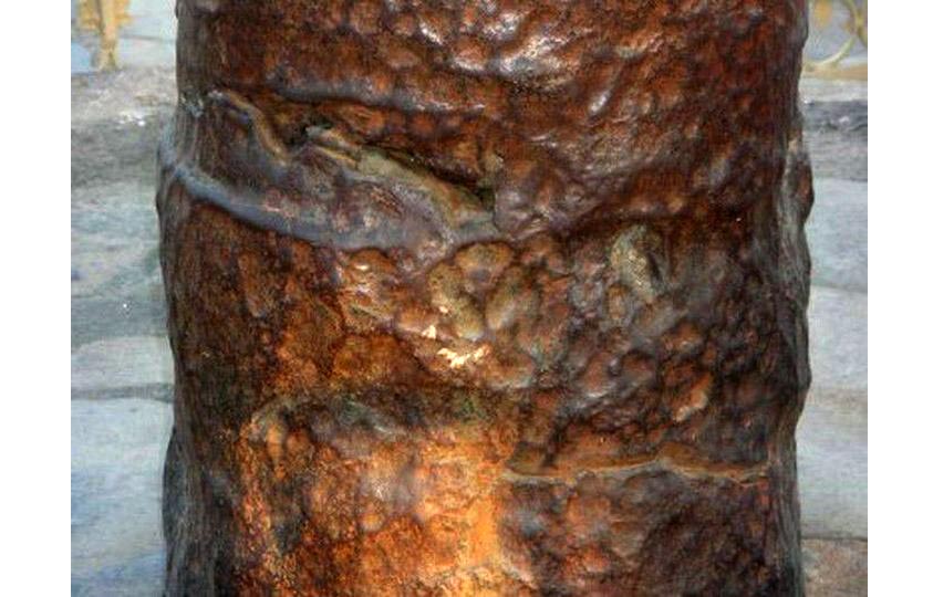 Впечатляет? О, да! Но куда больше впечатляет факт, что монолит на 99,72% состоит из чистого железа! Примеси в нем составляют всего 0,28%. При этом на черно-синей поверхности колонны можно заметить лишь едва различимые пятнышки коррозии.
