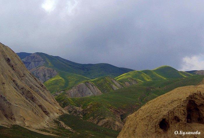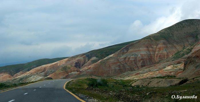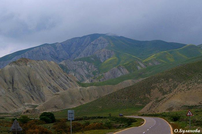 Вот горы меняют свой цвет и абрис - мы подъезжаем к Хызы.