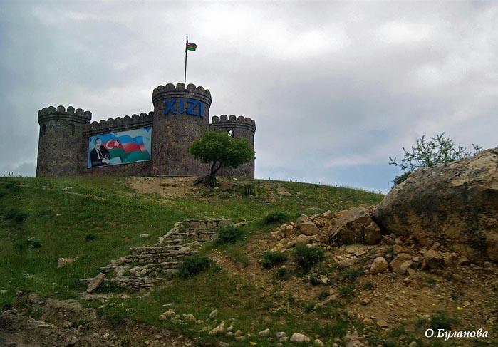Вот такой мини-крепостью отмечен въезд в Хызы: