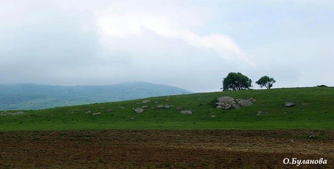 Обратите внимание: здесь природа уже совсем другая. Много зелени, простора, горы стоят где-то у горизонта...