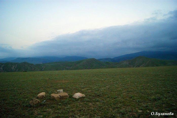 Высокие синие горы на горизонте - это предгорья Большого Кавказа.