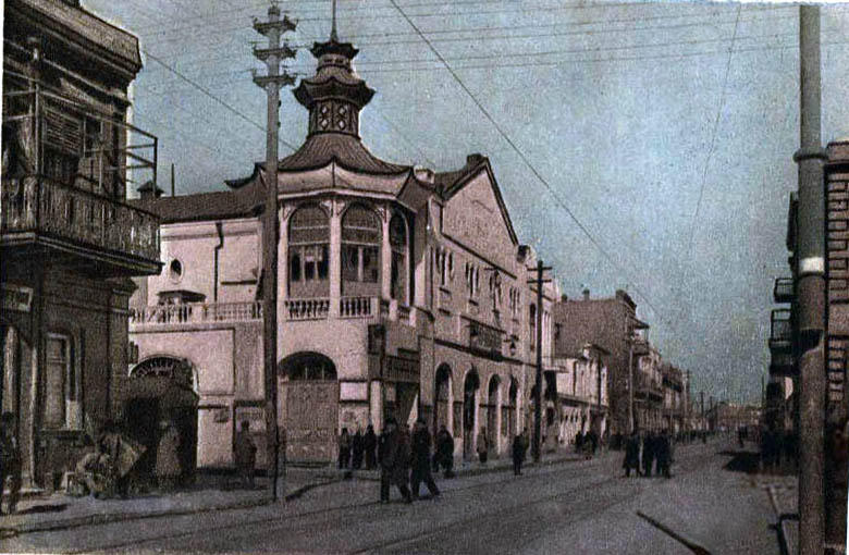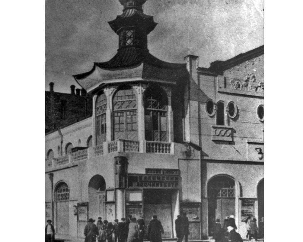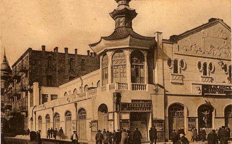 Алигейдар бек, любитель путешествовать, отправился в Китай и Японию. Вернувшись оттуда переполненный впечатлениями, он решил, что нужно идти в ногу со временем и... переоборудовал склад под синематограф. И это была не просто перестройка, это была роскошная стилизация: здание получилось в этаком японо-китайском стиле пагоды. Правда, типично складской объем здания не изменился, пагодой стал угол, выходящий на Молоканский сад.