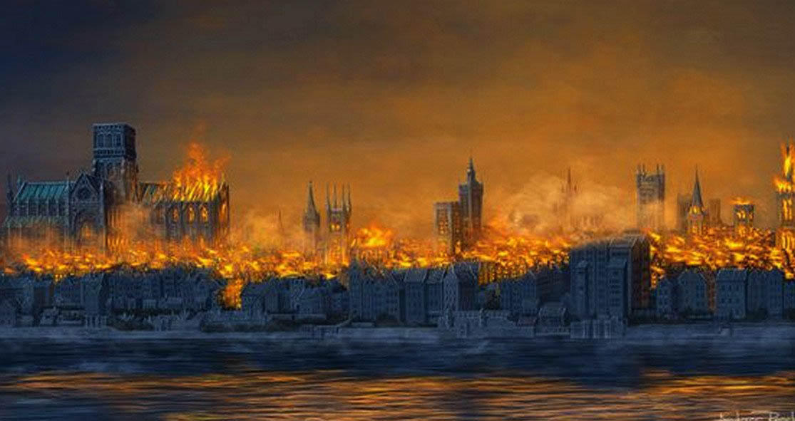 Адское пламя бушевало больше трех дней - с ночи на воскресенье и до среды. Три ужасных дня и не менее ужасных ночи в лондонское небо взмывали языки красного пламени. За это время сгорело 13200 домов на четырехстах больших улицах, 87 церквей и множество общественных зданий, было опустошено 300 акров земли.