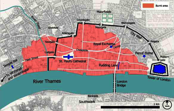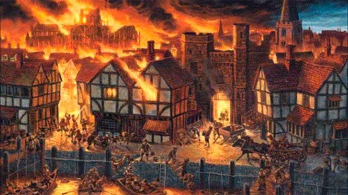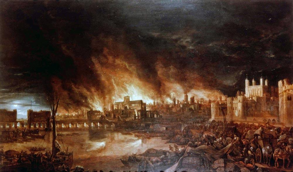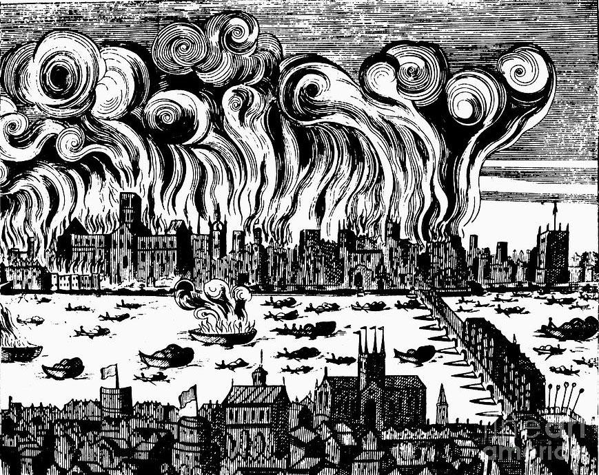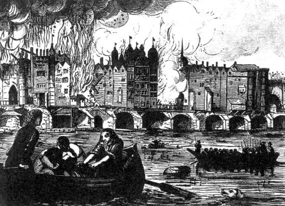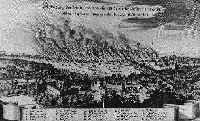 Лондон, полный строений из просмоленных досок и отштукатуренной дранки, загорался часто, так что люди уже привыкли к таким переселениям. Было как минимум шесть крупных пожаров, так что этот город можно считать величайшим "погорельцем" в истории.