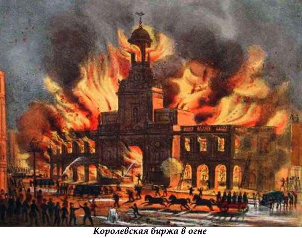 Горели магазины и лавки, расположенные на Лондонском мосту. Искры с него долетели до противоположной стороны Темзы, и от них начались пожары в других районах города. В пепел обратились Ратуша и Королевская биржа - финансовый центр Лондона.