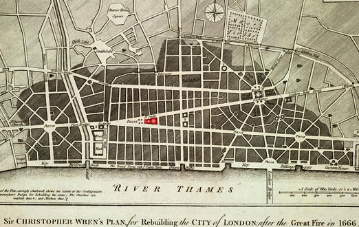 Когда жители Лондона начали поправлять и заново отстраивать свои жилища, замечательному архитектору и математику Кристоферу Рену (Врену) (1632-1723) было поручено составить проект новой планировки и отстройки города.