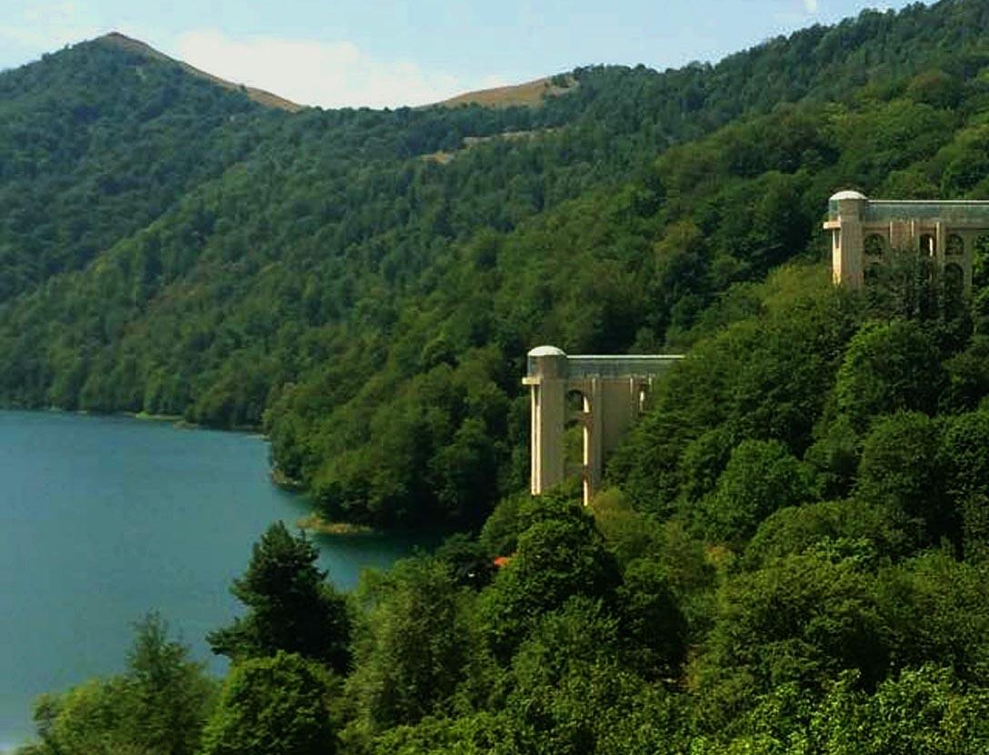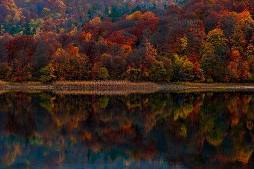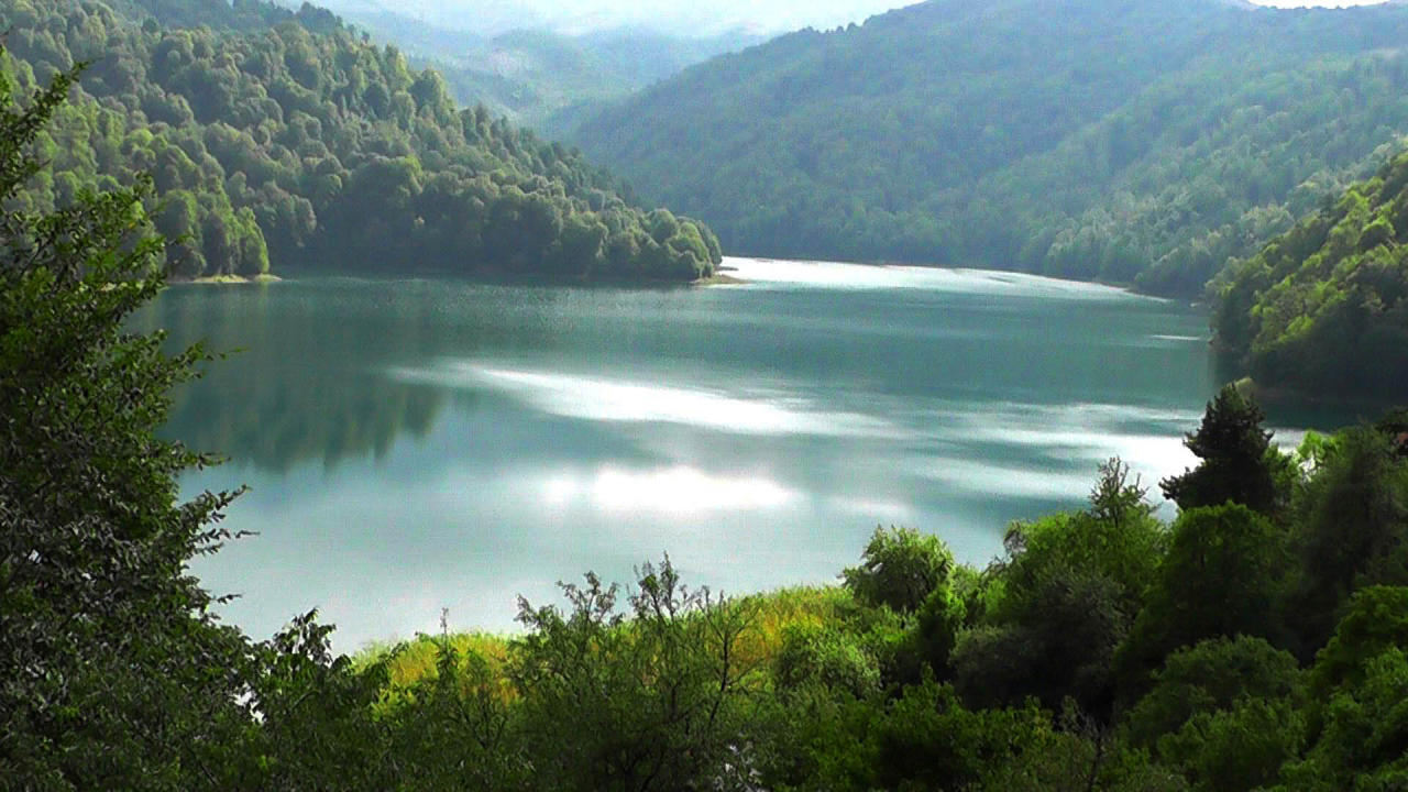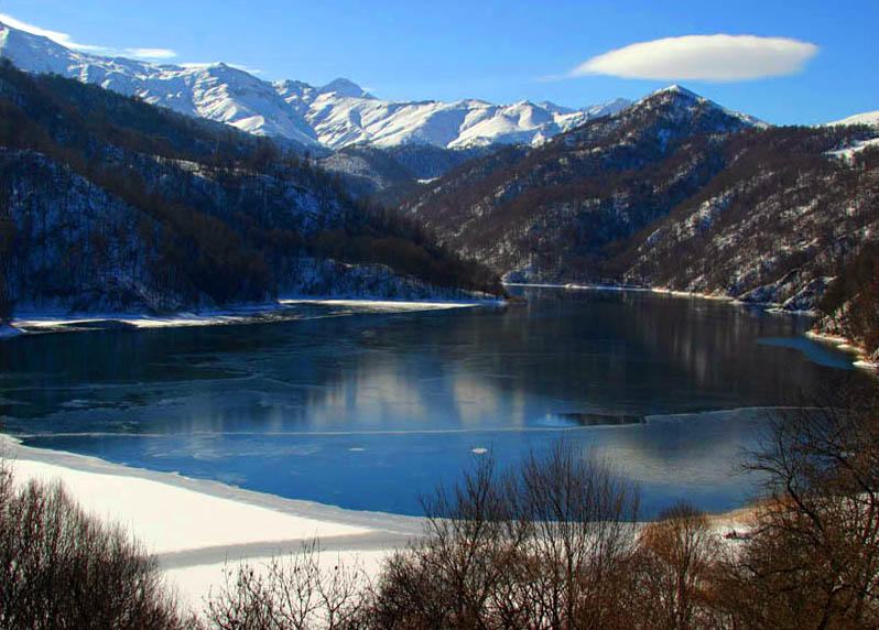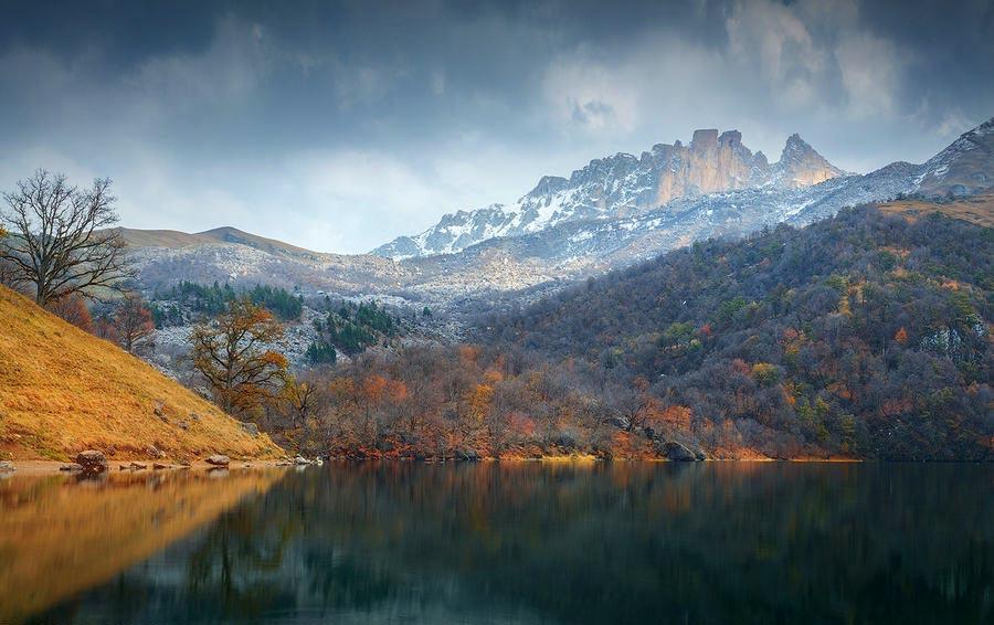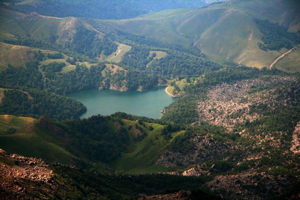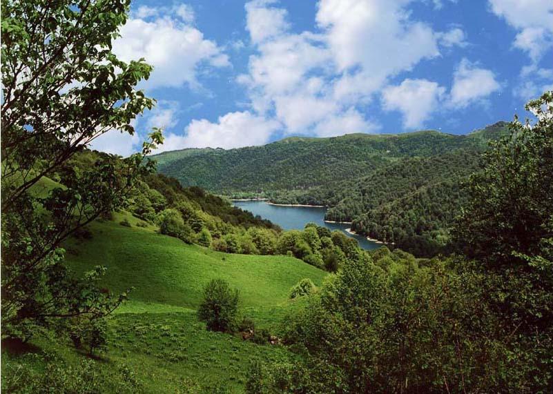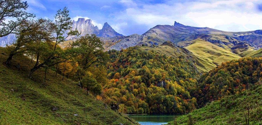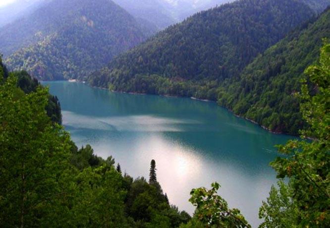 Такое чувство, что сотворил это чудо великий художник, не упустив из виду нечего, никакой мелочи, которая могла бы сыграть на общее впечатление. Здесь и горы, покрытые коврами лугов, и густые зеленые леса, и прозрачный звенящий воздух, и зеркальная гладь воды, отражающая испуганно озирающегося оленя, и скалистая вершина горы Кяпаз с вечными проплешинами снегов, как венец завершающая эту величественную картину.