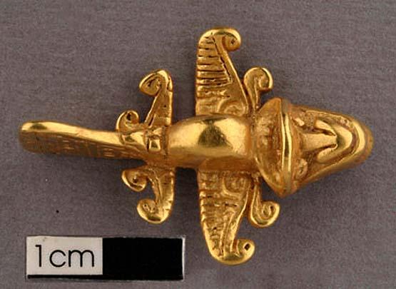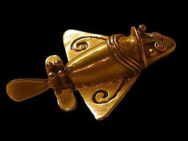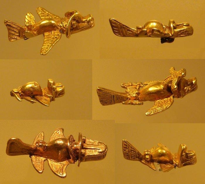 Точнее, он не один, их целая эскадрилья - таких фигурок найдено тридцать три штуки! Эти находки были сделаны в XIX веке не только на территории Колумбии, но и в Перу, в Коста-Рике и Венесуэле, т.е. в разных местах, что говорит об их широком распространении.