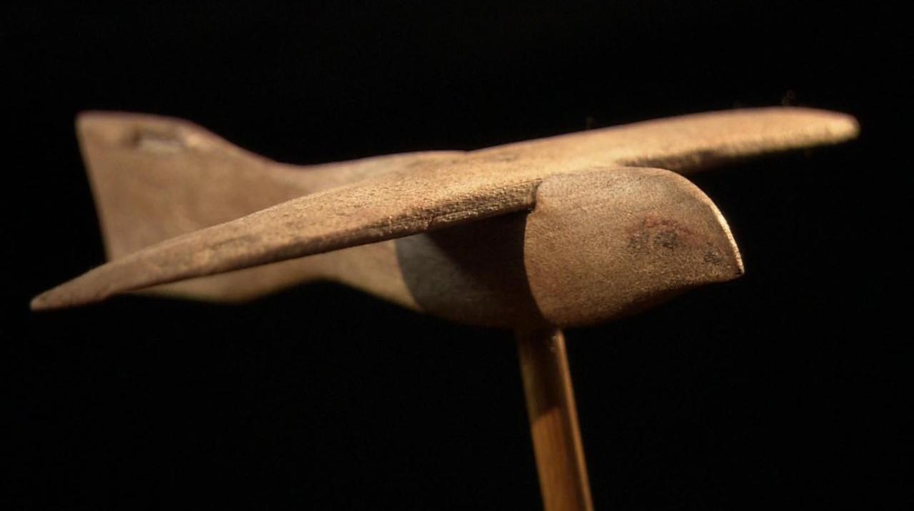 Любопытно, что такие самолетики - с вертикальным хвостовым оперением - не одиноки. Так, в Египте была обнаружена деревянная модель летящей птицы, изготовленная 25 веков назад.