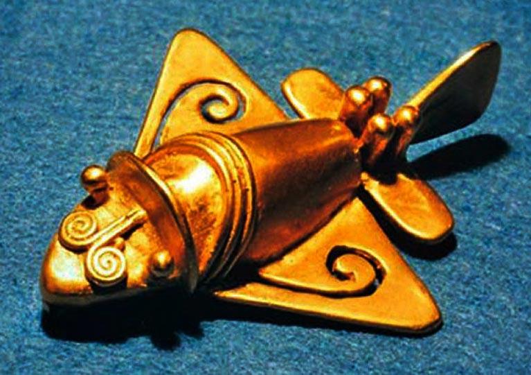 Одна и самых интересных находок, подтверждающая, что в древности люди умели летать, – это так называемый «Колумбийский самолетик». Представляет собой золотую четырехсантиметровую фигурку.
