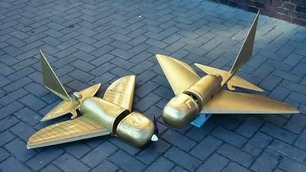 В Германии в 1996 году двое любителей авиации и авиамоделирования - Петер Белтинг и Альгунд Энбом - создали увеличенные в шестнадцать раз копии колумбийских фигурок. Одна копия была снабжена обычным пропеллером, другая - реактивным двигателем и обе - радиоуправлением. Испытание было широко разрекламировано, пригласили авиаторов, историков, археологов, даже зоологов не забыли. Потрясены были все: копии колумбийских находок обладали великолепными аэродинамическими свойствами, с легкостью выполняли такие фигуры высшего пилотажа, как "бочка" и "мертвая петля". Они обладали прекрасной маневренностью и даже с выключенным двигателем они свободно планировали в воздухе.