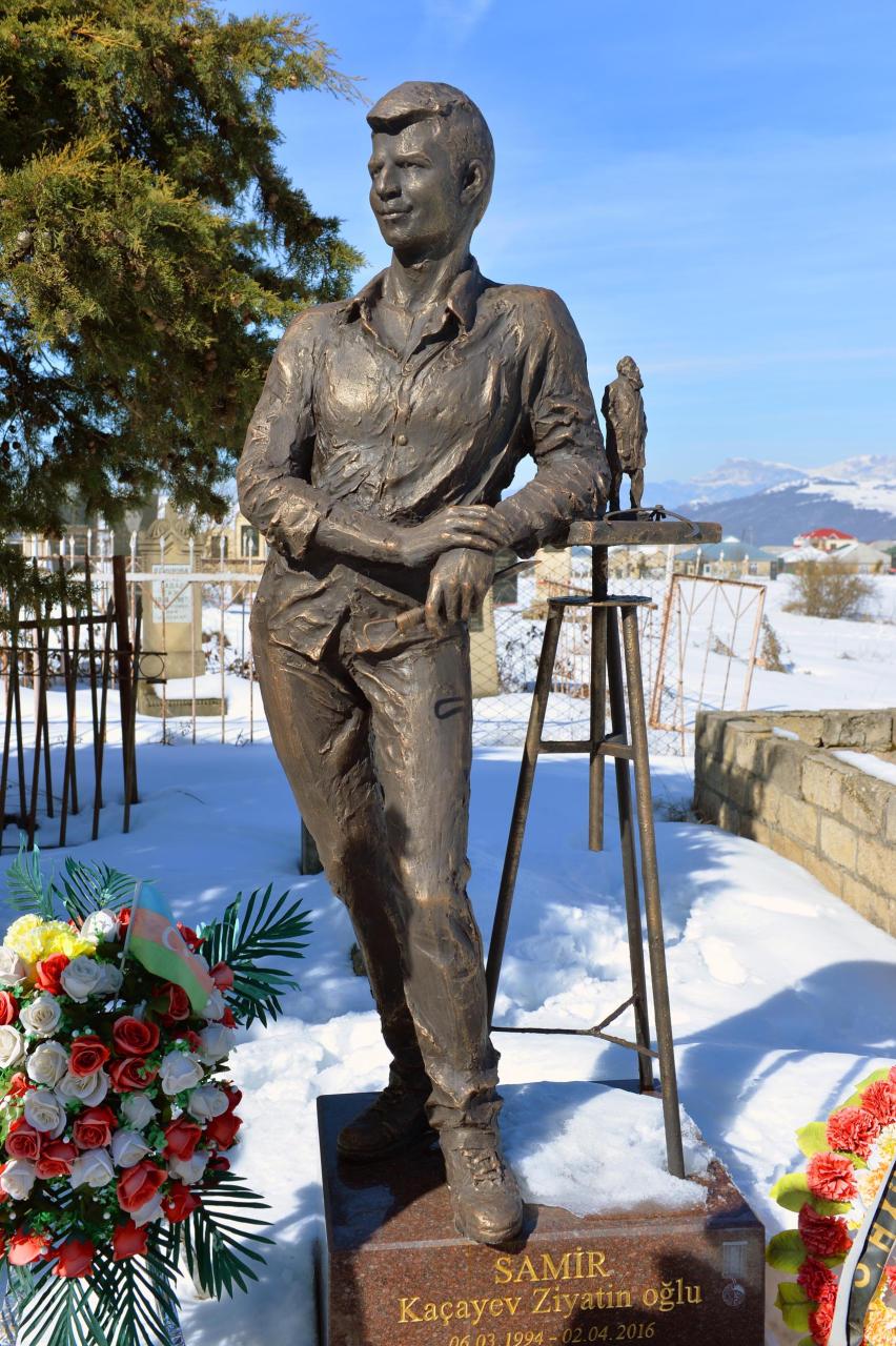 Память о Самире Качаеве нашла свое отражение и в надгробном памятнике, который осенью прошлого года был установлен на могиле шехида. Увековечил память Самира его друг, молодой преподаватель в Азербайджанской государственной художественной академии Рахиб Гараев.