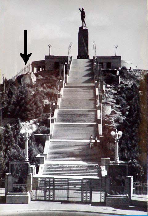 Рядом с валуном, буквально в нескольких метрах, была проложена парадная лестница, ведущая прямо к подножию памятника. По идее, его должны были бы снести - он ведь основательно портил весь вид, нарушая всем своим вызывающим видом идею строго террасирования парка. Однако не снесли! Более того, рядом с ним была сооружена небольшая площадка.