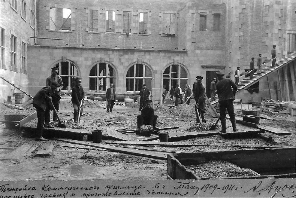 Окончено строительство примерно в 1913 г. - в ежегодном справочнике "Баку и его районы" издателя М.С. Шапсовича уже имеется упоминание о Бакинском коммерческом училище по новому адресу.