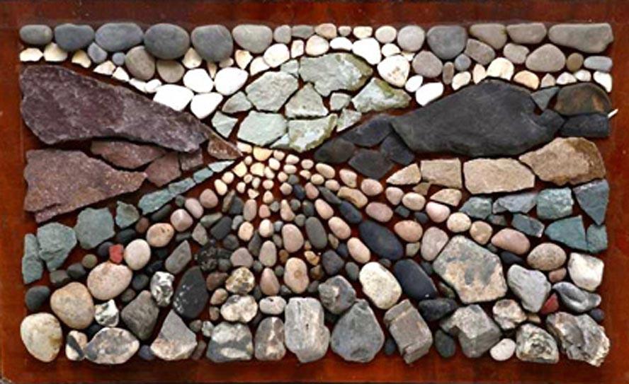 Походил по окрестностям дачи и совершенно случайно обнаружил заброшенное птичье гнездо из ветвей. Принес его домой, покрыл паркетным лаком и обложил этими камнями. Получилось неплохо... И с тех пор увлекся этим уникальным видом искусства.