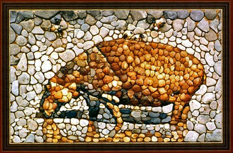 На каждую работу уходит, как минимум, по четыре-пять месяцев труда. К каждой работе Самед Самедоглу подбирал определенный тип морских или речных камней, иногда использовал ракушки. И никаких следов краски - все цвета естественные!