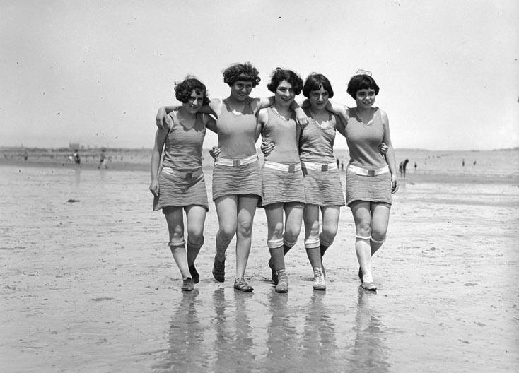 Даже эстетика 20-х годов, с ее стремлением к худобе и всяческому конструктивизму, не сразу вытравила из людского сознания милые сердцу бульонки, да и женщины не сразу поняли, что худые ноги - это хорошо и удобно для жизни. В первой половине 20-х годов по пляжам всех мировых курортов все еще спокойно прогуливаются девушки с крепенькими конечностями, совершенно не думая, что крепенькие - это не комильфо. Да и модные фотографы продолжают все это тиражировать для парижского журнала "Vogue", "заточенного" на эталоны красоты. Иными словами, эталон пока не меняется.