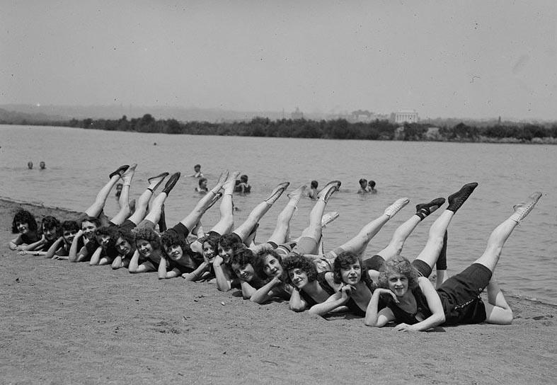 А вот в 30-е годы, когда женщина доказала себе и всему миру, что она не "тварь дрожащая", а право имеет - на модный автомобиль, прическу "под мальчика" и купальный костюм с неприлично открытой спиной, Шанель заметно успокоилась. Да и мир облегченно вздохнул, глядя на длинные вечерние туалеты со струящимися до щиколоток подолами. Правда, на пляже или на корте ноги оголялись все так же активно. И не дай Бог теперь иметь эти самые толстые коленки! Что только женщины для этого не делали!.. Спортивные упражнения - это самый простой способ.