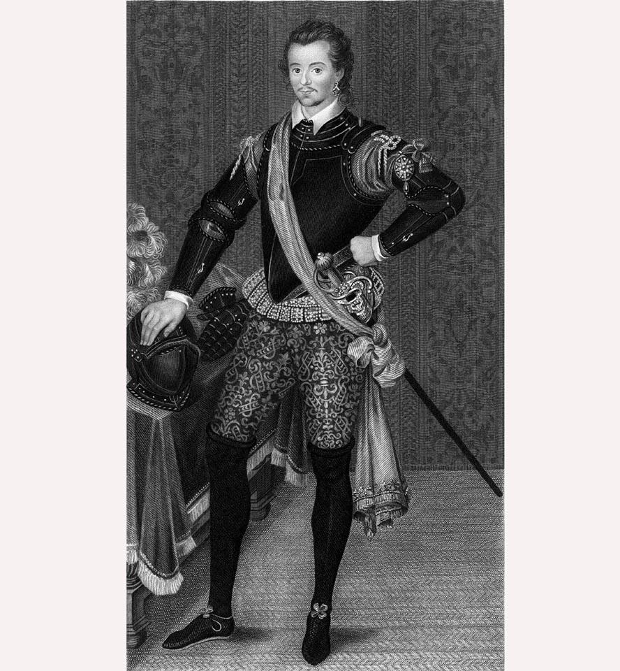 Потом, конечно, Людовик бросил танцы, разжирел, как водится, однако, ноги у него до конца дней остались весьма стройными. Другим длинноногим красавцем был платонический любовник Елизаветы I Тюдор - Роберт Дадли, живший в XVI веке.
