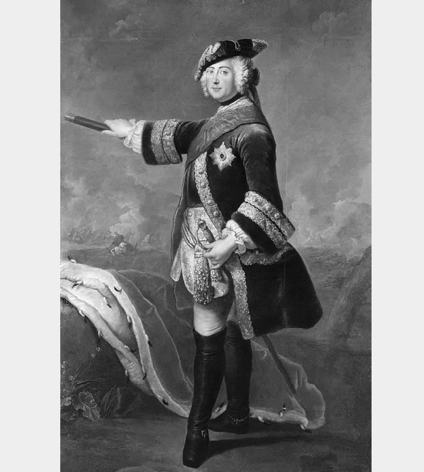 Длинноногим, хотя и мелким, был Фридрих Великий. Увидев его, французский посол в России - маркиз де Ля Шетарди - написал: "Прусский кронпринц негармонично сложен - слишком длинные ноги". В общем, король имел маленькое тельце, прилаженное к длинным паучьим ножкам. Портретисты, конечно, старались это замаскировать.