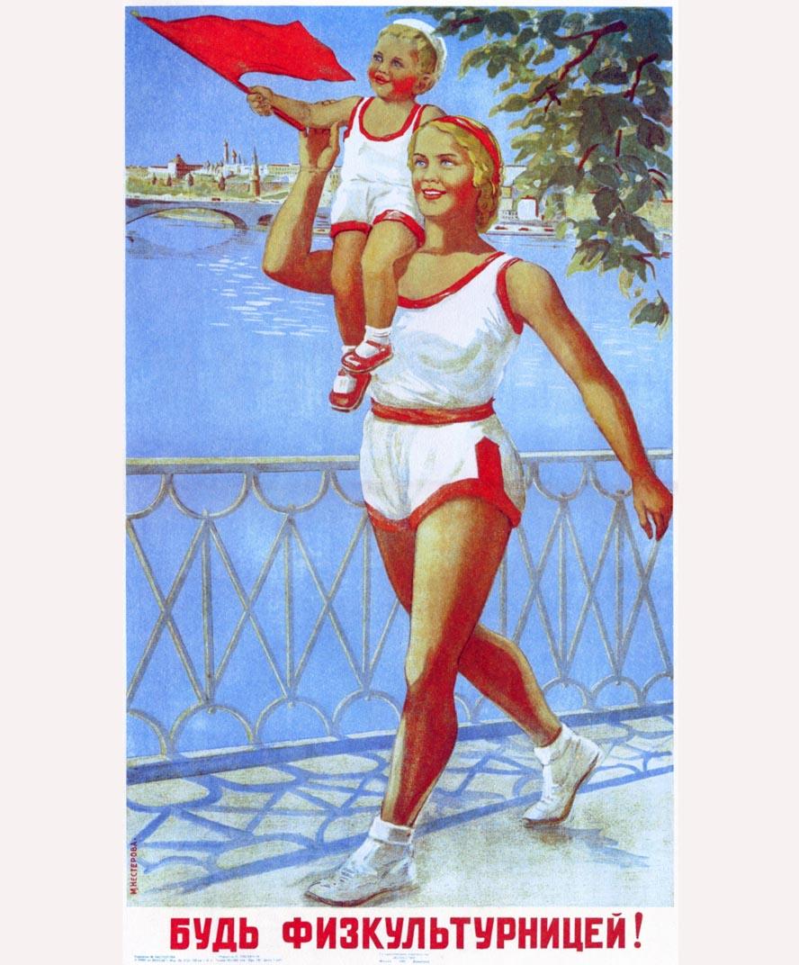Зато изобразительное и плакатное искусство широко рекламировало эталон советской спортсменки, которая, в отличие от Марики Рёкк, ну, или там от фридриховой зазнобы Кампанини, должна была иметь мощные ноги.