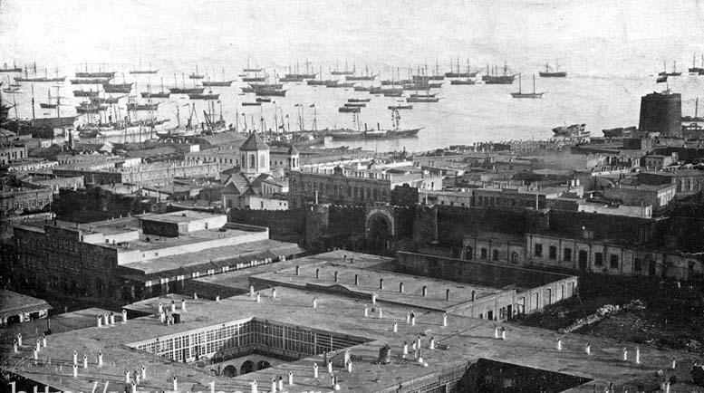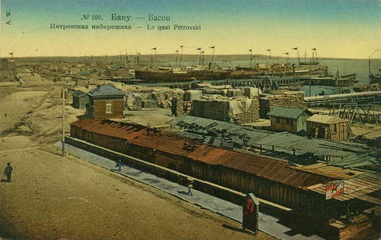 Во второй половине XIX в. торговый порт занял побережье Бакинской бухты и стал главнейшим по грузообороту в Российской империи. Он имел 103 пристани на деревянных сваях. Средняя длина пристани составляла 100 саженей. Дополнением к ним служила "портовая не мощеная территория, находившаяся между урезом воды и набережной улицей, предназначавшейся для складирования грузов".