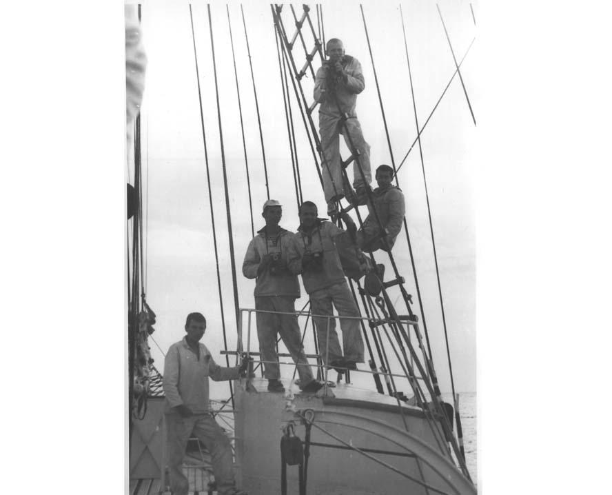 Вначале шхуной командовал в это время известный парусник и яхтсмен капитан А.А. Аристов. Одно время (после выхода в запас) начальником практики на "Кодоре" был не кто-нибудь, а контр-адмирал Николай Александрович Лунин - легендарный подводник, атаковавший "Тирпиц".