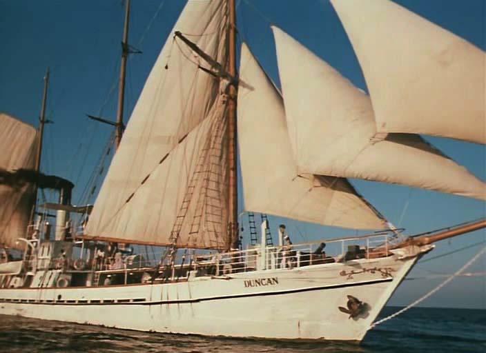 Чтобы превратить "Кодор" в "Дункан", его пришлось слегка видоизменить, например, поменять названия на носу и корме, установить макет пушки и бутафорскую дымовую трубу, ведь "Дункан" по роману - паровая яхта и из трубы должен был валить дым. Для тех, кто разбирается в типах судов, "Дункан" выглядел довольно странно: в романе это бриг, т.е. двухмачтовое судно с прямыми парусами, а, следовательно, бизань-мачты иметь не должен, а тем более бермудские косые паруса.