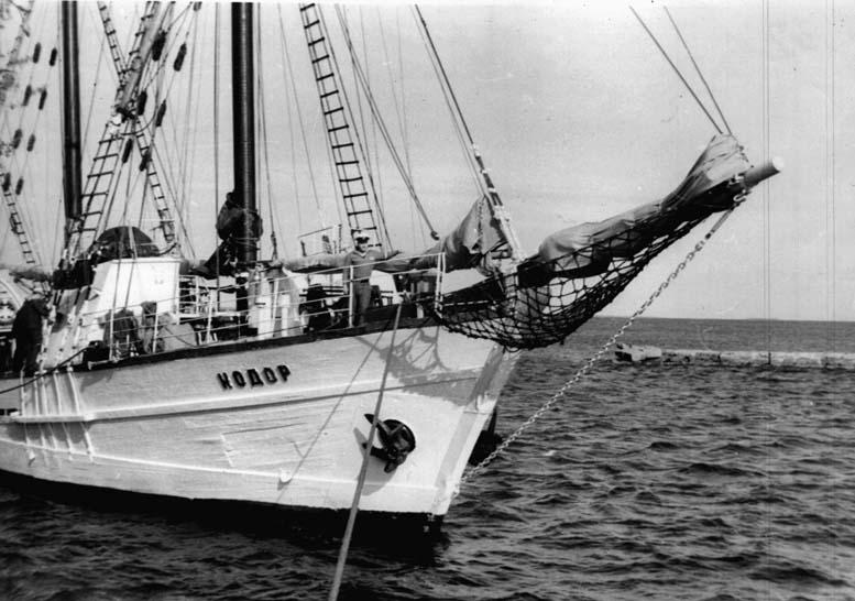 В 1950 г. "Кодор" был переделан в прекрасное учебное судно с заменой парусной оснастки гафельной шхуны на бермудскую. Принадлежащая к Ленинградскому мореходному училищу, она ходила с курсантами по водам Атлантического океана и одиннадцати морей, в основном, Балтийского.