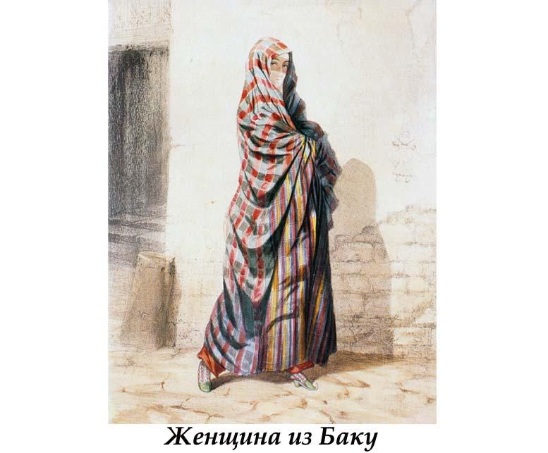Баку и другие города Азербайджана изображали, как известно, многие художники. Но вот жителей города и страны рисовали не так часто. К счастью, история донесла до нас большое количество акварелей Г.Г. Гагарина (1810-1893), изображающих не только архитектурные памятники Баку и страны, но и людей.