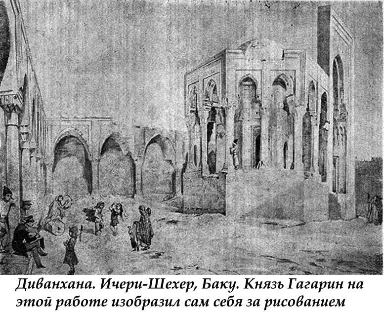 В общей сложности на Кавказе князь Г.Г. Гагарин провел около десяти лет, за это время несколько раз побывав в Баку и Азербайджане - с 1840-го до 1853 г. Его называли "певцом Кавказа".