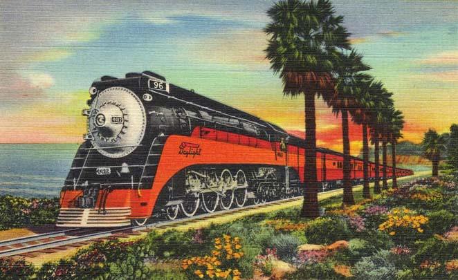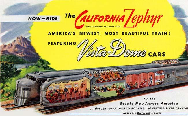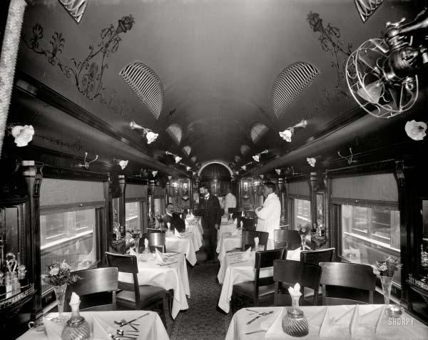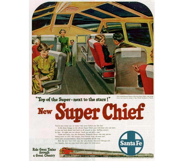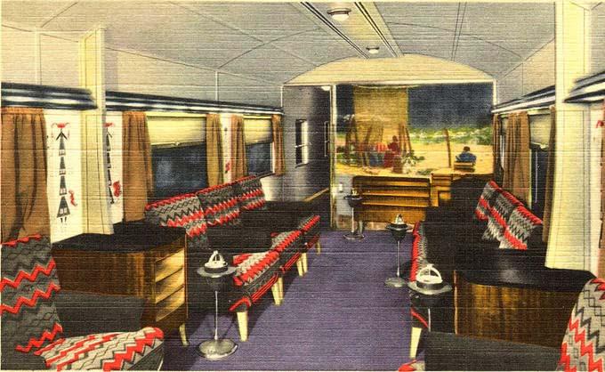 В роскошных составах, кроме спальных вагонов, предоставлявших невиданный прежде комфорт, имелись рестораны, гостиные и даже спецвагоны с панорамным остеклением, позволявшим пассажирам наслаждаться пейзажами, не прерывая светской беседы за коктейлем. Это был триумф промдизайна, вероятно, высшая точка развития железных дорог США и их же лебединая песня.