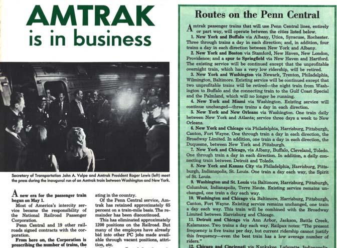 Авиационное и автомобильное лобби, конечно, сохранило свое влияние, но даже с полным учетом его интересов администрации Никсона стало понятно, что будущее, причем ближайшее, грозит полным распадом ж/д системы страны, что чревато непредсказуемыми последствиями. В 1971 г. с образованием компании Amtrak остатки пассажирского железнодорожного движения были фактически национализированы.