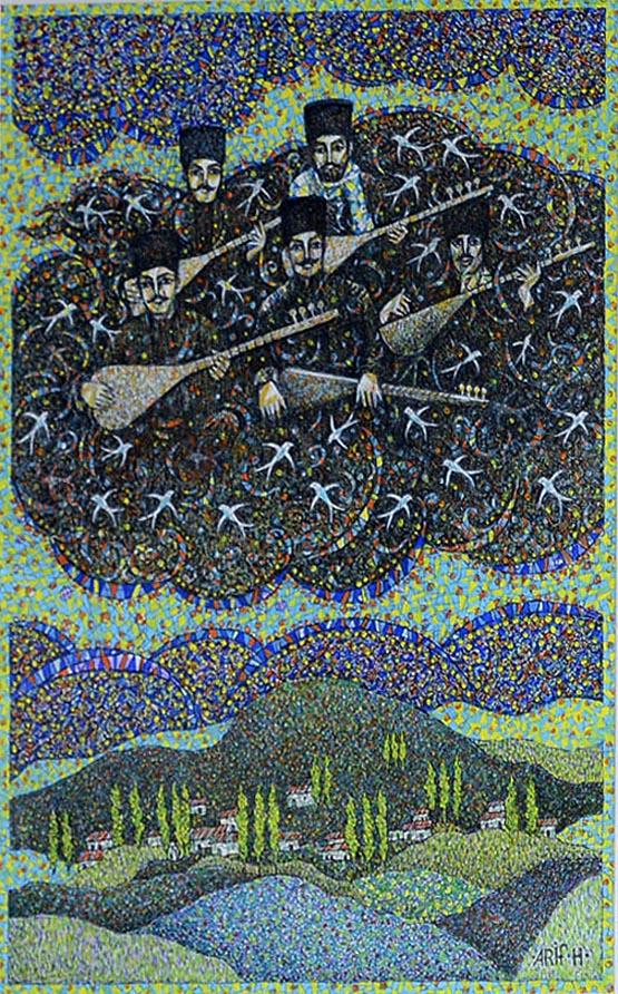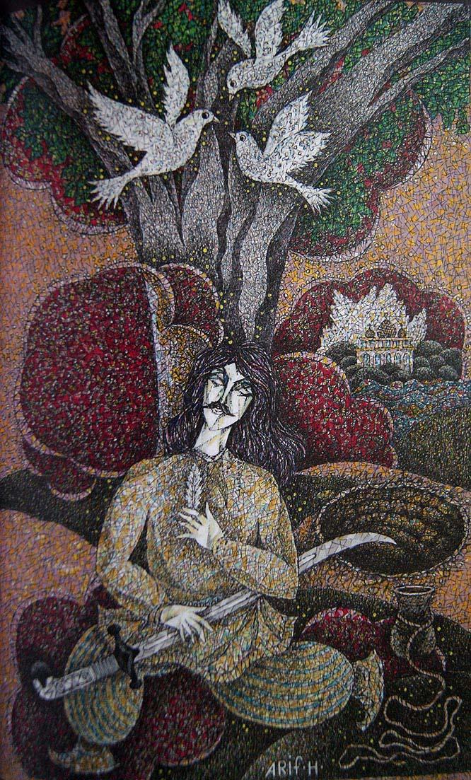 "Я счастлив, - сказал художник в одном из интервью, - что именно мне доверили проиллюстрировать "Антологию ашугского искусства". Ашугов в Азербайджане всегда любили. Они выражают мысли и желания народа, рассказывают эпические поэмы о победе добра над злом. Свои миниатюры, которые вошли в сборник, я писал под впечатлением от этой музыки. Это мое видение музыкального произведения, которое я перенес на бумагу".