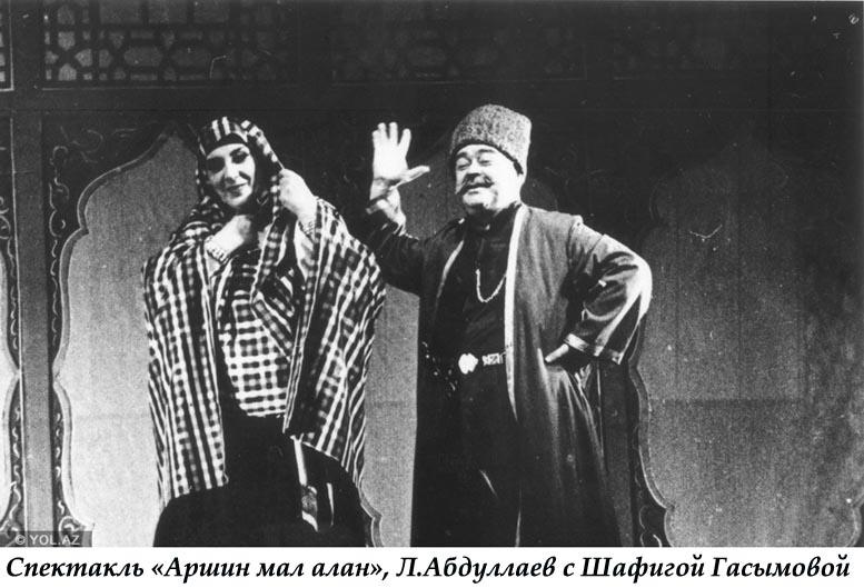Но откуда их взять? И вот в театре ставится нашумевшая в Москве "Свадьба в Малиновке"... и не имеет никакого успеха у азербайджаноязычной публики. Что ж, можно считать это очень нужным поражением. В это же время с успехом ставятся мугамная опера "Ашиг Гариб", где в роли ашига Вели уже ярко проявляются артистические качества Лютфали - голос, талант актера и танцора, и комедия "Визирь Ленкоранского ханства" М.Ф. Ахундова на музыку Ниязи, где Лютфали изобретательно и с юмором играет Кяряма.
