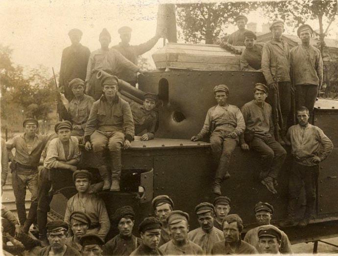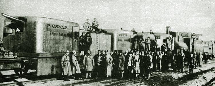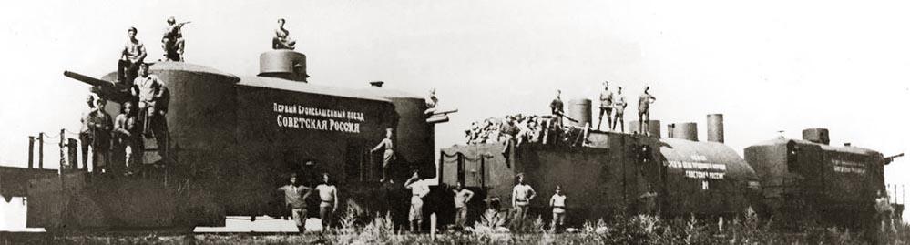 На паровозостроительном заводе Русского общества машиностроительных заводов в Луганске (бывший Гартмана) первый бронепоезд построили в марте 1918 г. В апреле-мае 1919 г. при обороне города от деникинцев в экстренном порядке оборудовали еще 10 бронепоездов. Пять боевых единиц дал РККА казенный пушечный завод в поселке Мотовилиха близ Перми. В сентябре 1919 г. здесь наладили ремонт бронепоездного состава.