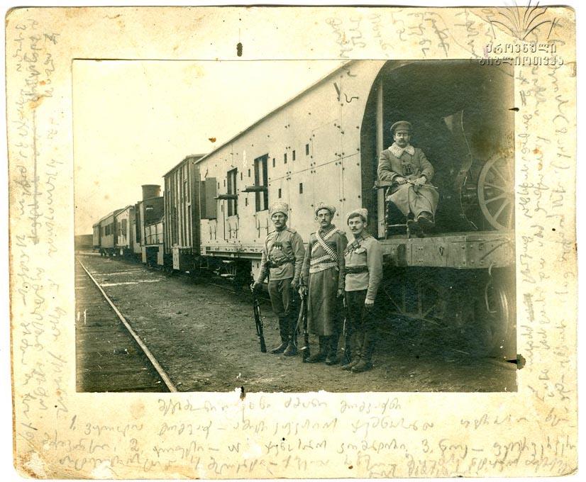 Однако и белогвардейцы захватывали советские бронепоезда. Вот парочка фото бронепоездов, захваченные грузинами в 1918 г. при развале Кавказского фронта Первой мировой. В 1921 г. из них был сформирован бронепоезд, применявшийся в боях под Тифлисом.