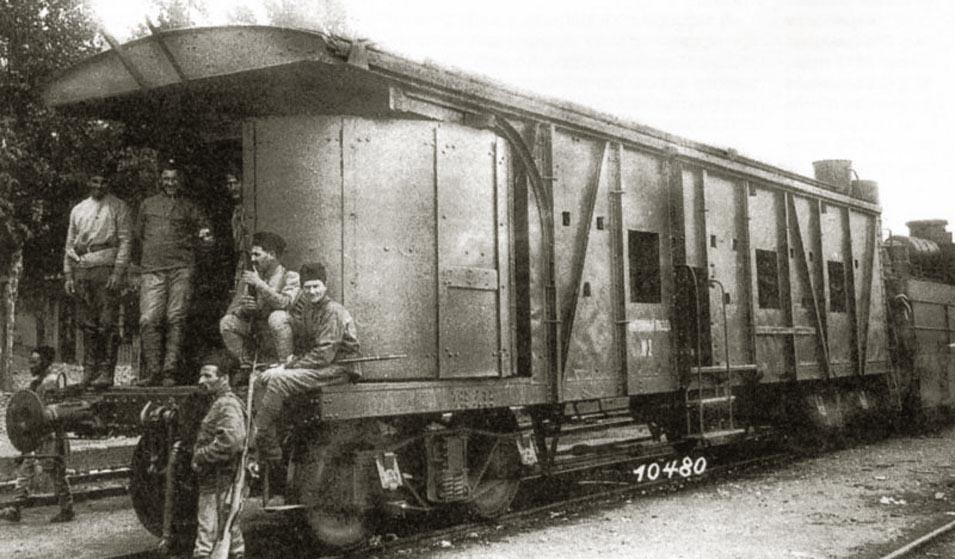 Вообще-то бронепоезда в царской армии применялись давно. Вот снимок 1915 г. типового бронепоезда Кавказской армии:
