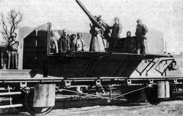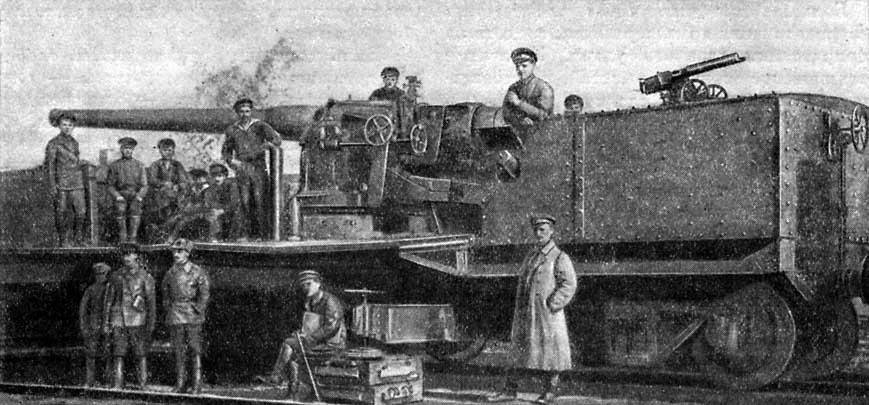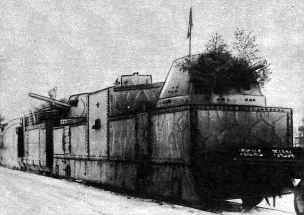 Часто встречались и бронелетучки - один вагон с орудием, намертво закрепленным на лобовом торце и способным вести огонь только вдоль направления движения. В бортах вагона устраивались бойницы для пулеметов и винтовок. В качестве тяги применялся любой подвернувшийся под руку паровоз, и лишь изредка котел его обкладывали мешками с песком.