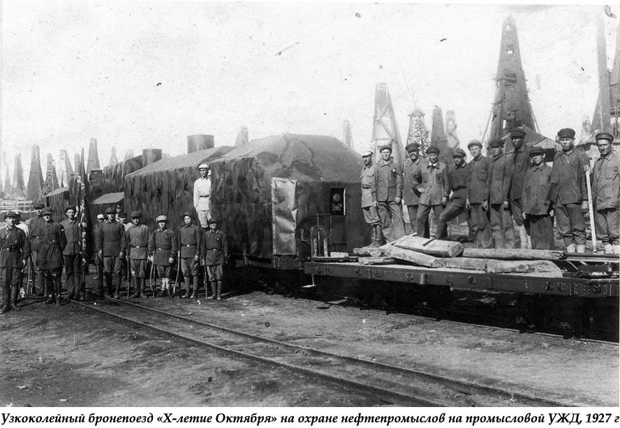 Однако с конца 20-х гг. по мере наращивания темпов моторизации и механизации армии, а также с изменением взглядов на характер современной войны положение дел стало быстро меняться. Появилась даже радикальная мысль о полной ликвидации бронепоездов как устаревшего средства вооруженной борьбы. Однако этого не произошло, и бронепоезда применялись в самых разных обстоятельствах. Например, при охране нефтепромыслов в Баку.