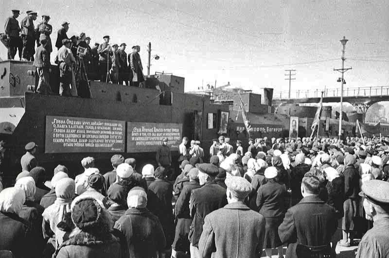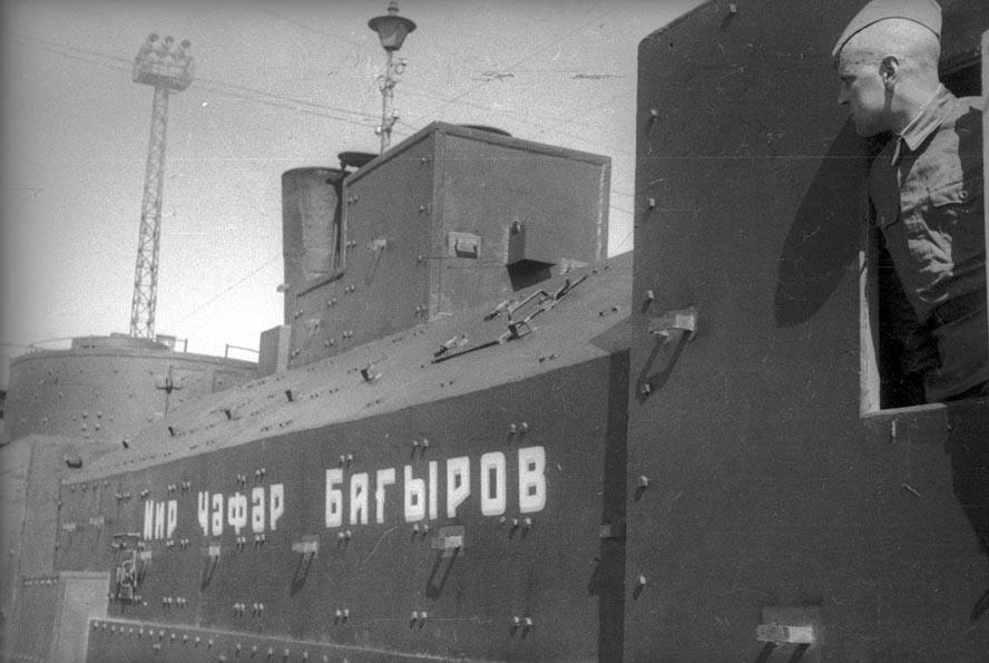Затем бронепоезда активно участвовали Великой Отечественной войне. Все следующие пять фото сняты в Баку в 1943 г.