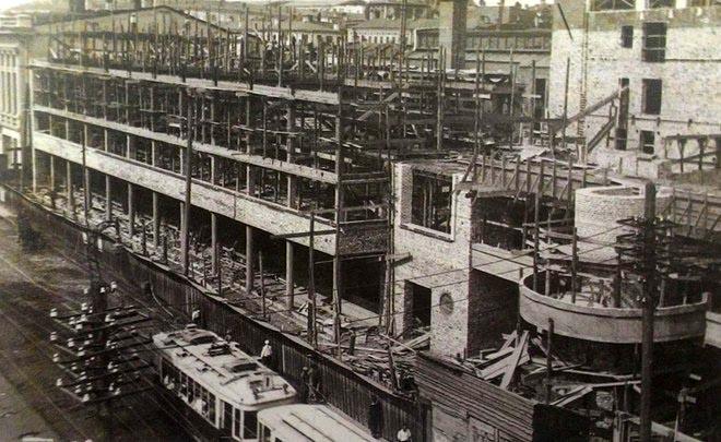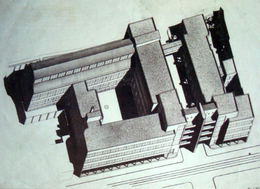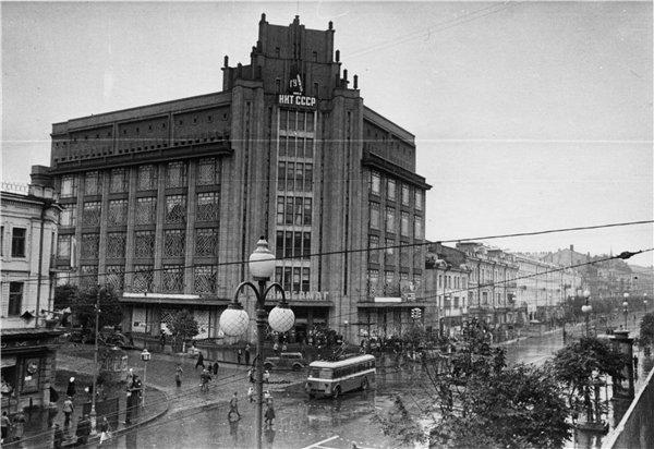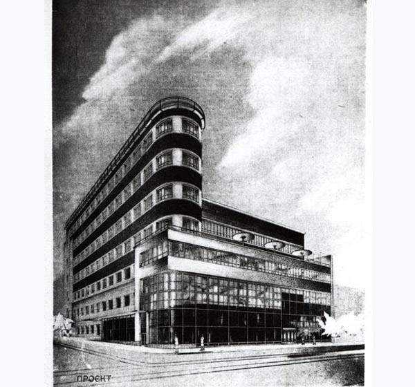 И в 30-е гг. на знаменитом Крещатике было даже начато строительство по этому проекту, правда, после перевода в 1934 г. столицы Украины из Харькова в Киев функцию сооружения изменили и теперь в нем планировалось разместить государственные издательства, т.е. это уже должен был быть Дом книги.
