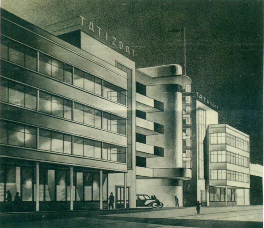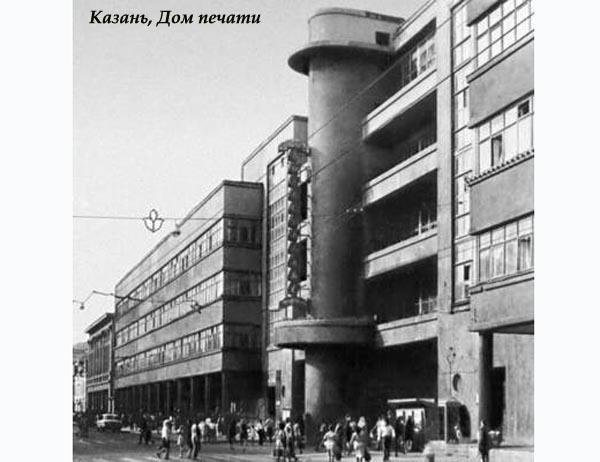 Вообще-то проект казанского Дома печати (другого автора по фамилии Татинж) к тому времени уже был, но настолько неудачный и нелепый, что в Москве его, как пишут современники, "не захотели взять в руки", хотя за работу Татинж подучил аж 2,5 тысячи рублей - сумасшедшие по тем временам деньги, и работал над ним с мая 1929 г. По этому проекту не был сделано даже промзадания. Для составления промзадания привлекли специалистов из Комитета печати СССР.